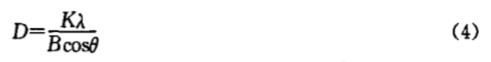薄膜晶粒的大小是影響薄膜衍射峰寬的因素之一。晶粒細小的薄膜的XRD譜線呈寬化。當晶粒小于10-5cm時,由于晶體結構完整性的下降和無序度的增加,衍射峰變寬,衍射角也發生2θ~θ的轉變。而且晶粒越小,寬化越明顯,直至轉變為漫散峰。試驗薄膜晶粒尺寸由Scherrer公式計算: