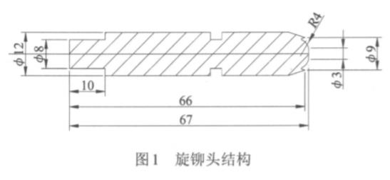 旋鉚頭材料為Cr12,主要成分:2.0%~2.3%C,11.5%~13%Cr,小于0.35%Mn,小于0.40%Si。旋鉚釘材料為SUS304不銹鋼,旋鉚頭結構如圖1所示,表面粗糙度值為Ra0.25μm。
