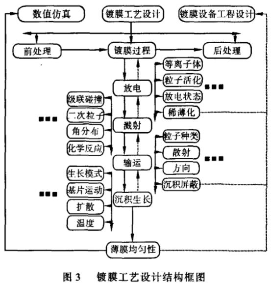 鍍膜設(shè)備的工程設(shè)計、鍍膜工藝的設(shè)計及二者的計算機數(shù)值仿真這三者之間是相輔相成的:鍍膜設(shè)備決定鍍膜工藝過程的實現(xiàn),鍍膜工藝促進鍍膜設(shè)備的升級,而高性能的計算機仿真設(shè)計給兩者的設(shè)計提供了強有力的支持。