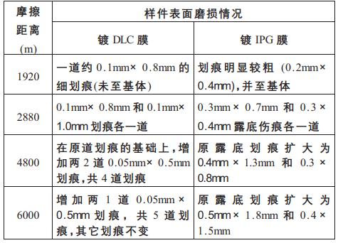 表 2 DLC 膜與 IPG 膜耐磨性對比