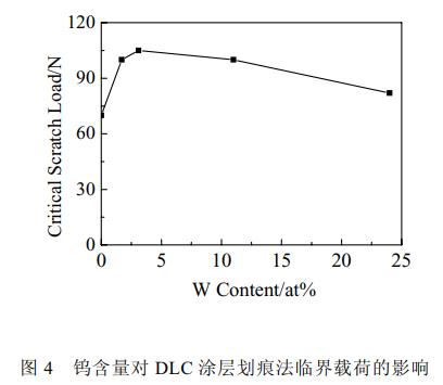 降低DLC涂層內(nèi)應(yīng)力和改善膜/基結(jié)合力的方法包括基體表面改性、過渡層制備、DLC涂層的合金化、復(fù)合化和多層化[4,8,11]等。摻鎢DLC涂層具有內(nèi)應(yīng)力低、膜/基結(jié)合力高、耐磨性好等優(yōu)點(diǎn),是具有廣泛應(yīng)用前景的DLC涂層。